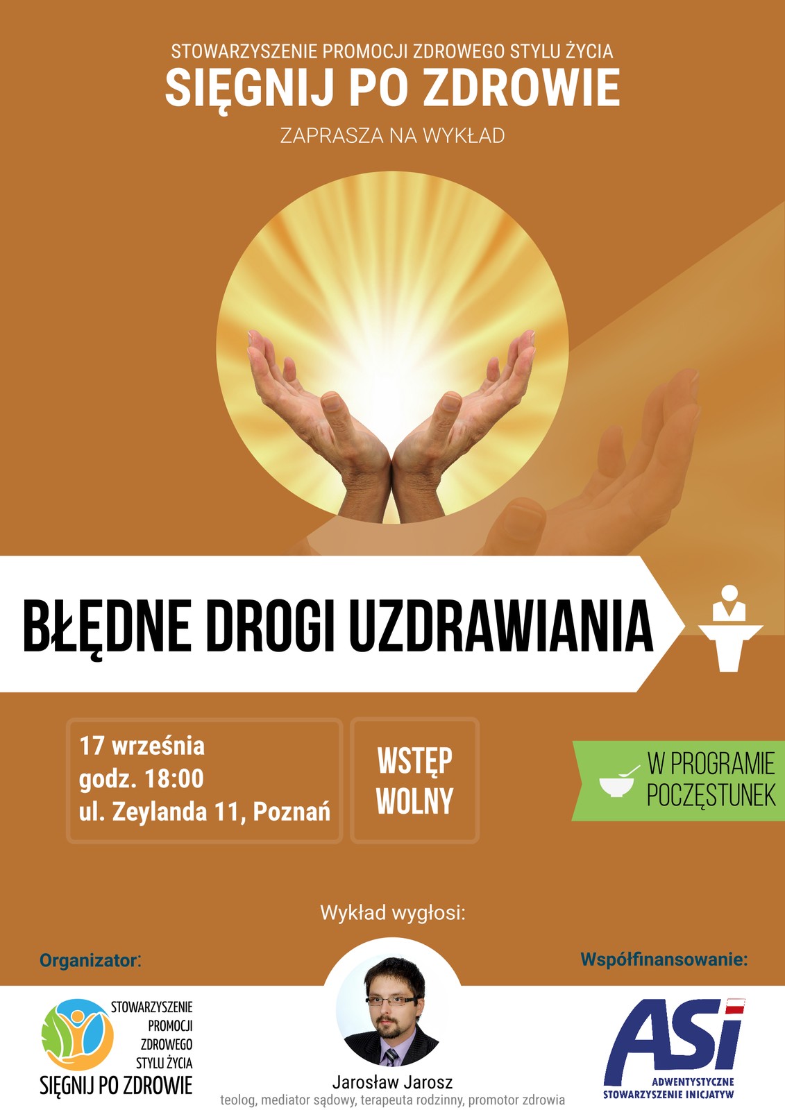 Zapraszamy Państwa na wykład Jarosława Jarosza „Błędne drogi uzdrawiania”, który poruszy kwestie mające związek z medycyną transcendentalną oraz jej koligacjami z parapsychologią. Prelegent jest przekonany, że szukając zdrowia nie powinniśmy skupiać się jedynie na sferze fizycznej, psychicznej czy społecznej, ale również (a nawet przede wszystkim) na aspekcie duchowym, ponieważ duchowość jest oknem duszy i kluczem do pozostałych płaszczyzn natury ludzkiej, a tym samym do pełni zdrowia.