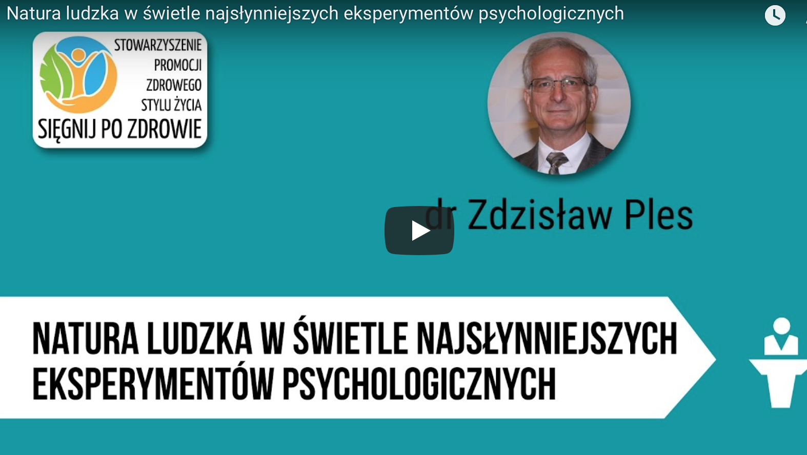Nagranie wykładu dr. Zdzisława Plesa pt. „Natura ludzka w świetle najsłynniejszych eksperymentów psychologicznych”, który odbył się w styczniu 2017 roku w Poznaniu w ramach działalności Stowarzyszenia Promocji Zdrowego Stylu Życia – Sięgnij Po Zdrowie.